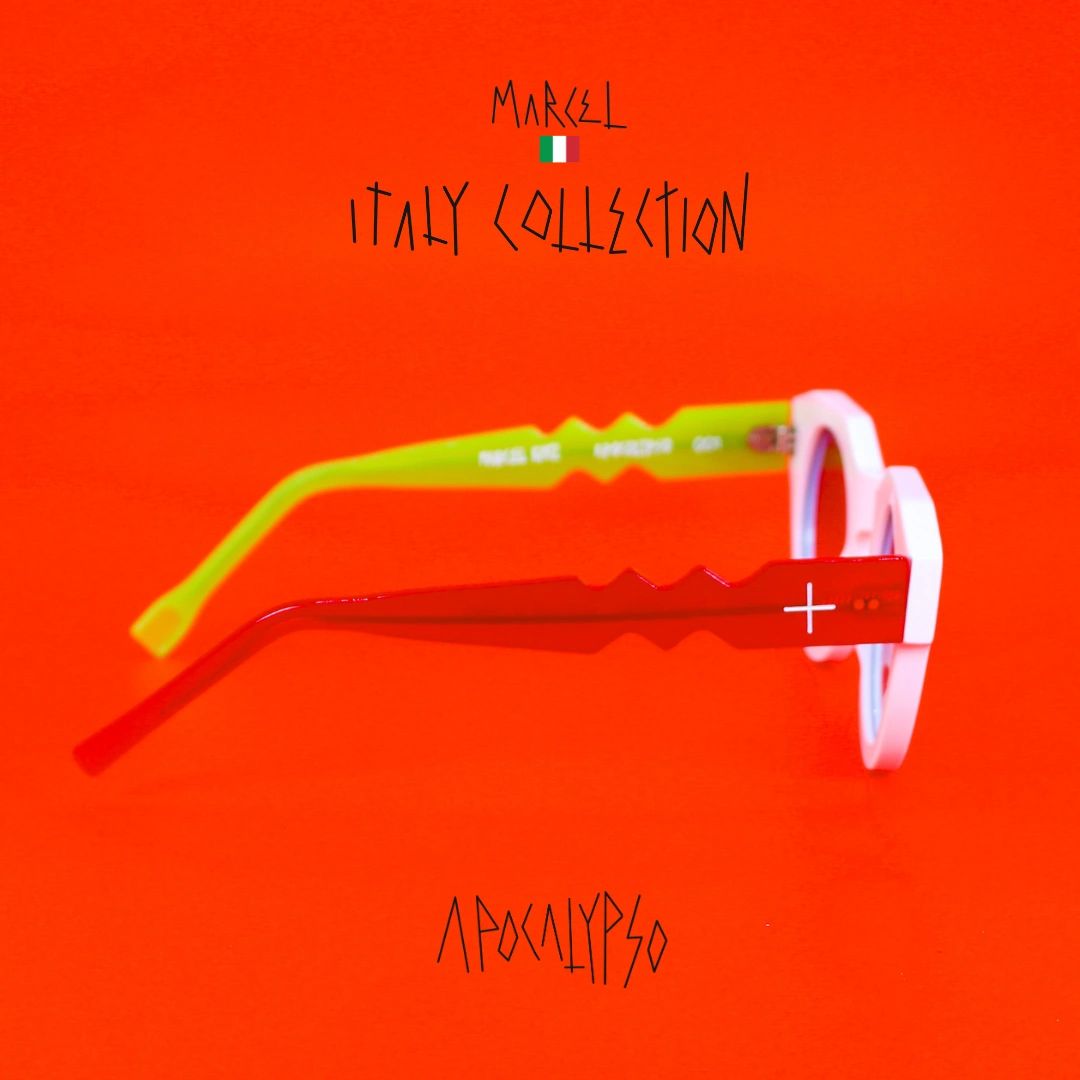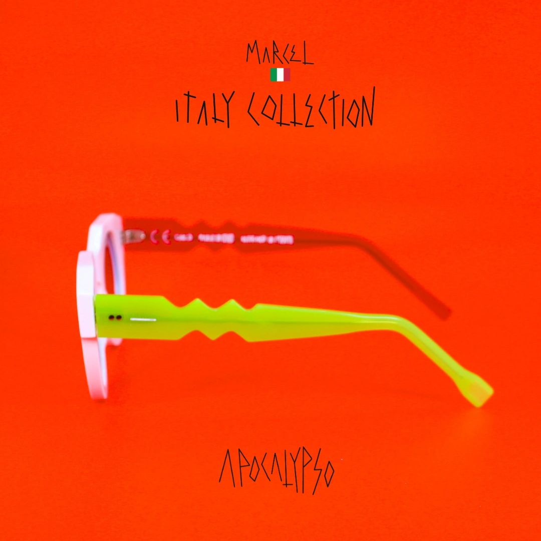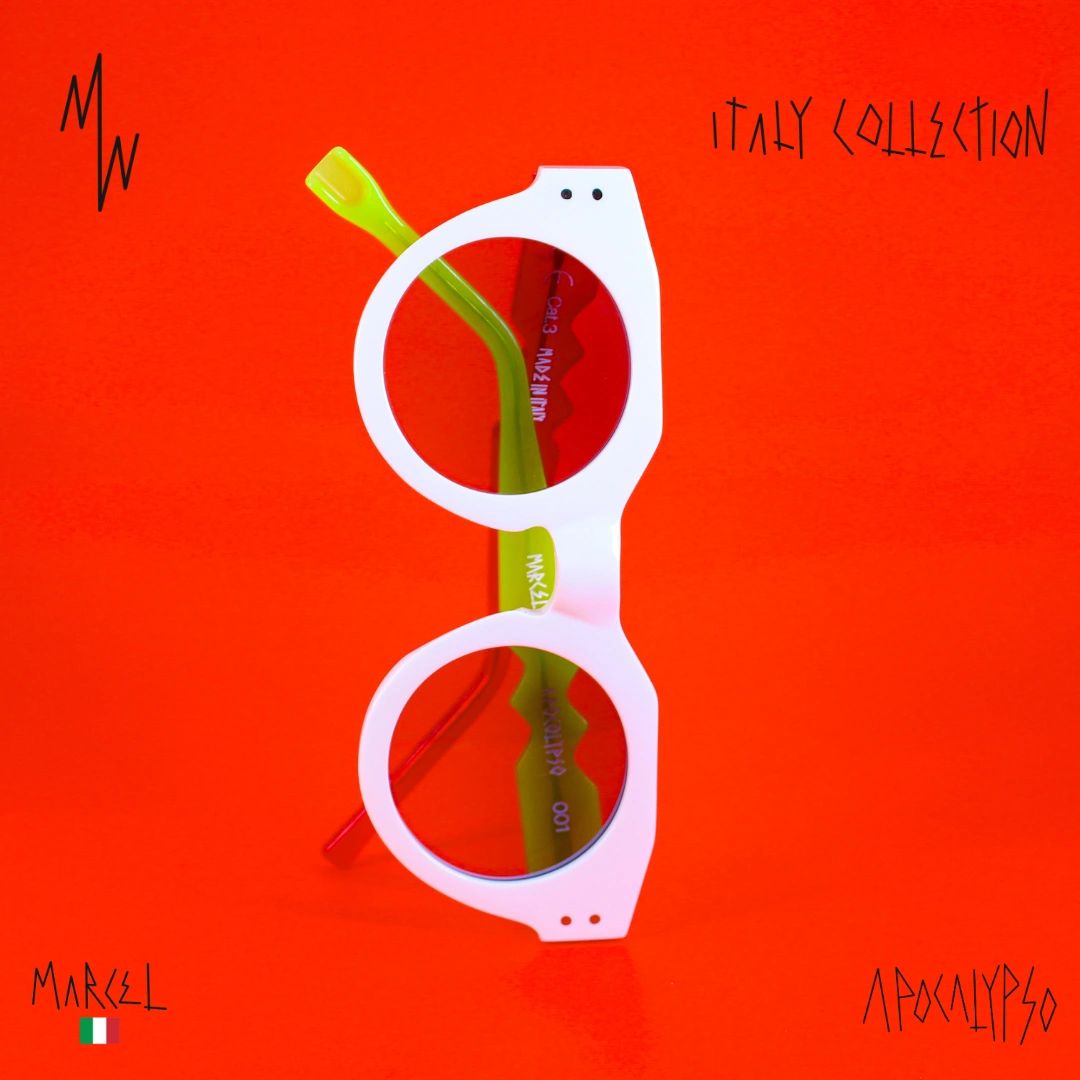 Handcrafted in Italy using sustainable materials and Carl Zeiss optics, this edition was limited to 20 pieces per style. Conceived in Miami and brought to life by Italian artisans, every frame symbolized one region’s creative essence and historical depth. The Apocalypso remains a bold artifact within the Maison Marcel archive, honoring the philosophy of preservation over production and celebrating the enduring influence of Italian design.