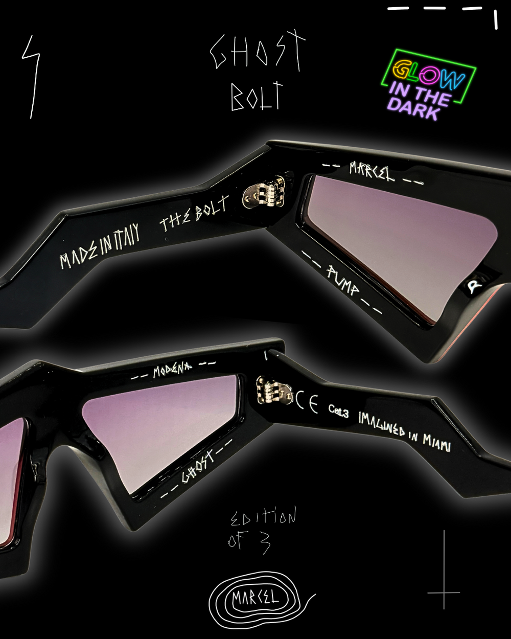 Handcrafted in Italy at the Maison Marcel laboratory, Dark Ghost Bolt V2 is produced in an edition of three pieces worldwide. Each is micro produced, finished by hand, and archived as an experimental collectible. No future repetition of this colorway or material configuration is planned.