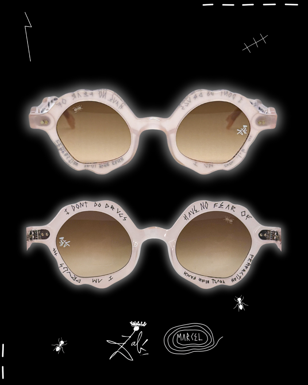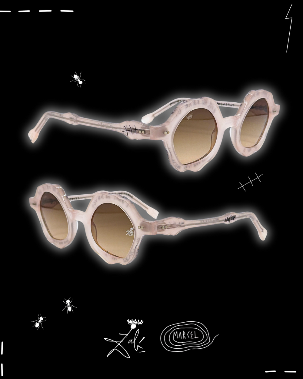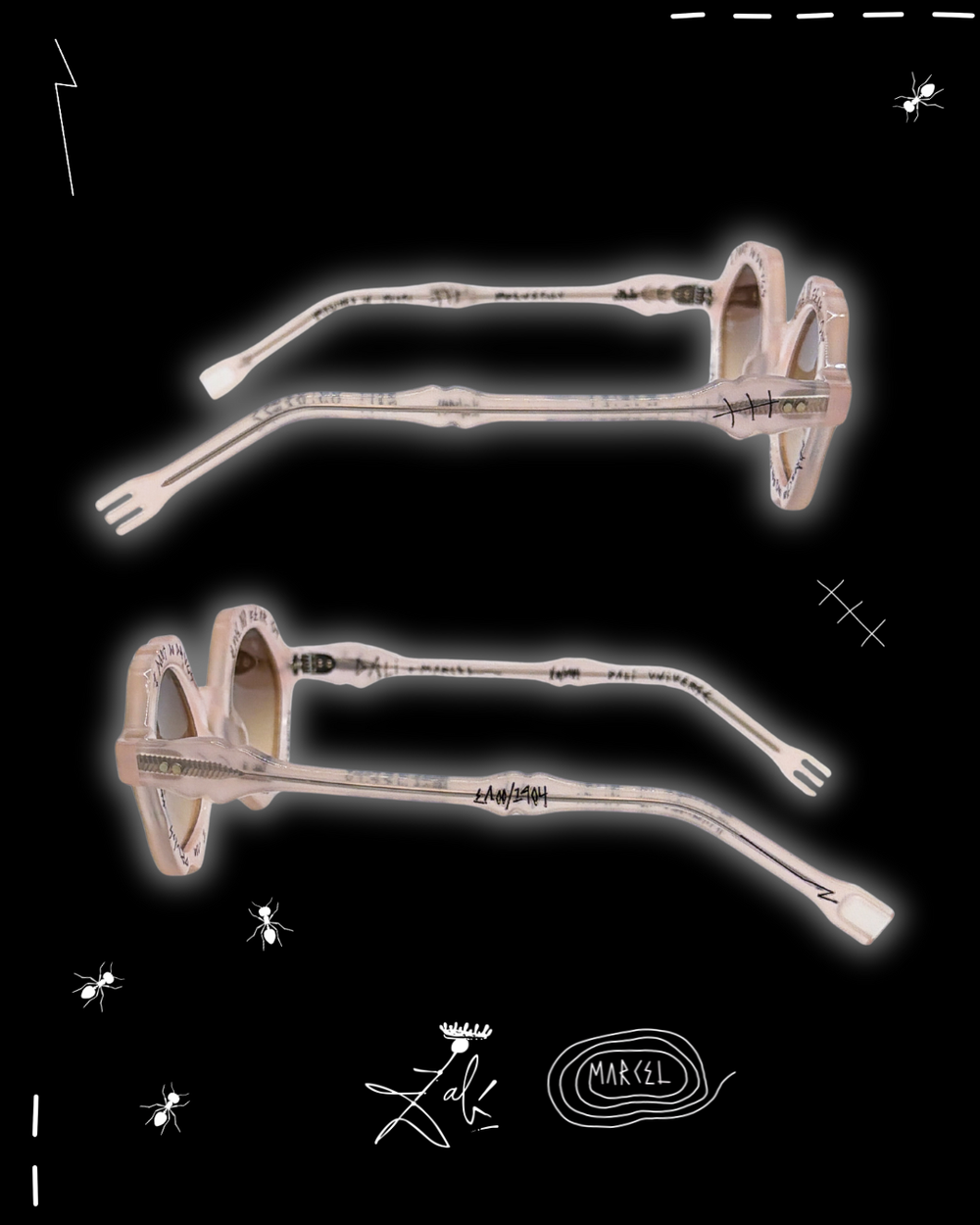Dalí never used the ant as decoration. He used it like a warning flare. In his universe, ants arrive when something is too polished, too permanent, too convinced of itself. They crawl into the image as a quiet force of decay, dissolving the illusion of perfection and reminding you that time always wins. That is why Formica exists. I tied the ant to this frame as a ceremonial death of conventional eyewear. Not a trend shift, a burial. The end of safe shapes, safe taste, safe vision. The ant becomes the architect of transformation, eating away the old rules until something surreal is revealed underneath. What remains is not better eyewear. It is a new object with a pulse. Decay is the doorway. Decay is how the unreal enters the room.