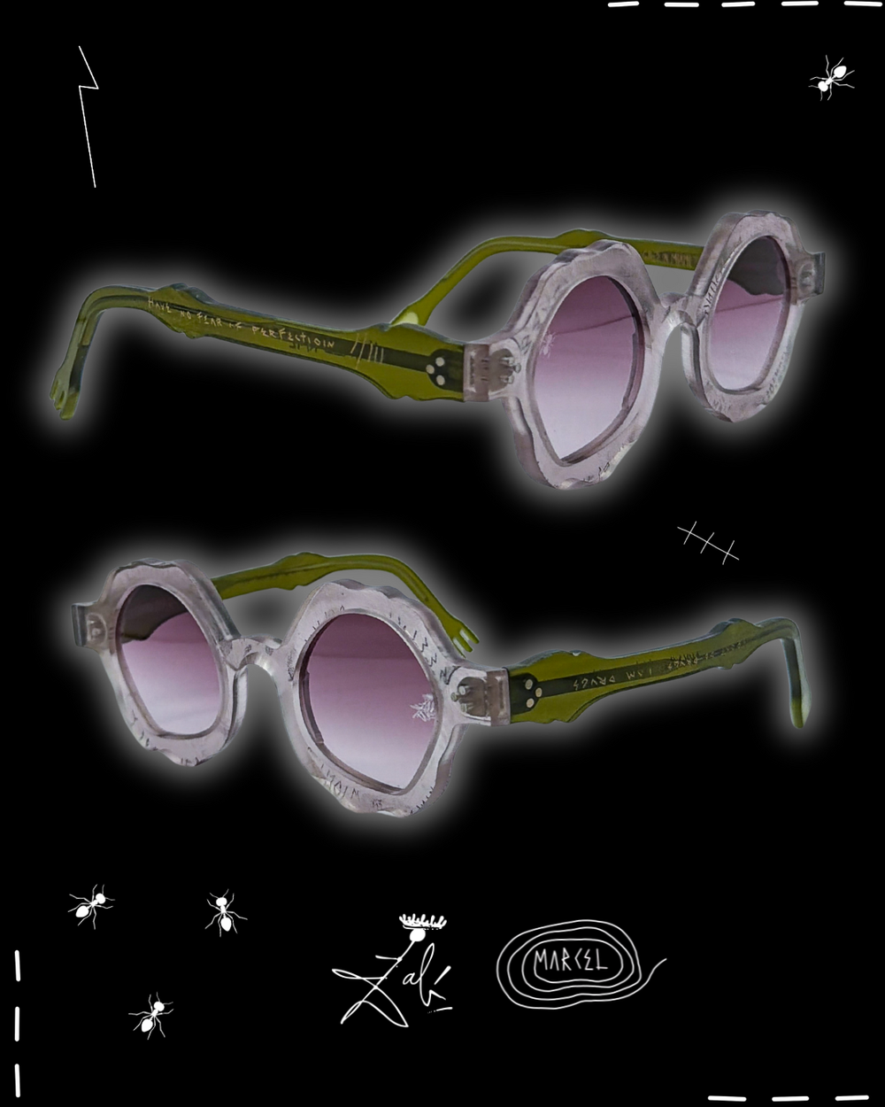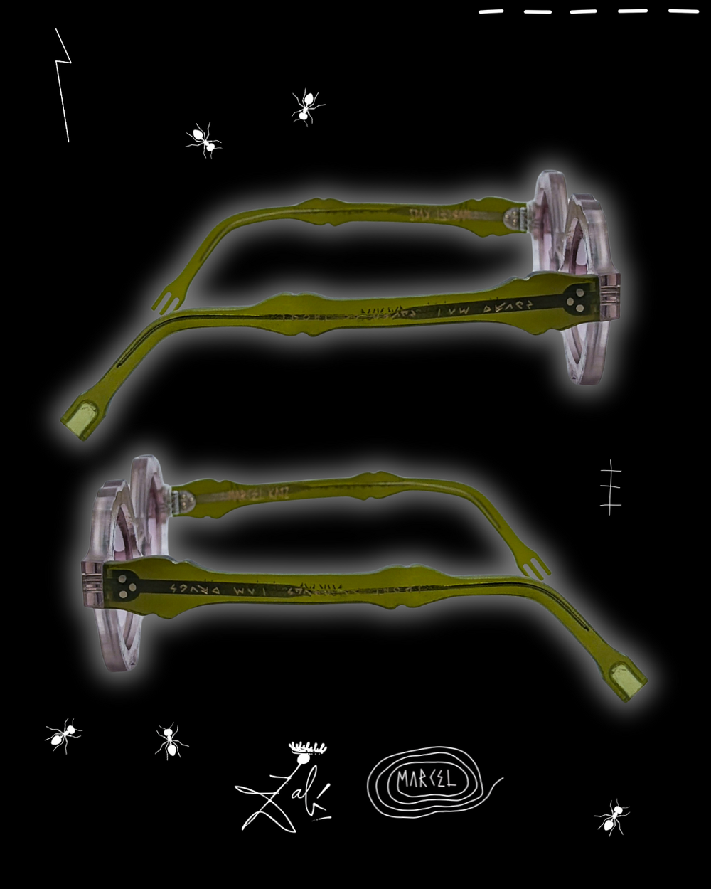 Dalí never used the ant as decoration. He used it like a warning flare. In his universe, ants arrive when something is too polished, too permanent, too convinced of itself. They crawl into the image as a quiet force of decay, dissolving the illusion of perfection and reminding you that time always wins. That is why Formica exists. I tied the ant to this frame as a ceremonial death of conventional eyewear. Not a trend shift, a burial. The end of safe shapes, safe taste, safe vision. The ant becomes the architect of transformation, eating away the old rules until something surreal is revealed underneath. What remains is not better eyewear. It is a new object with a pulse. Decay is the doorway. Decay is how the unreal enters the room.