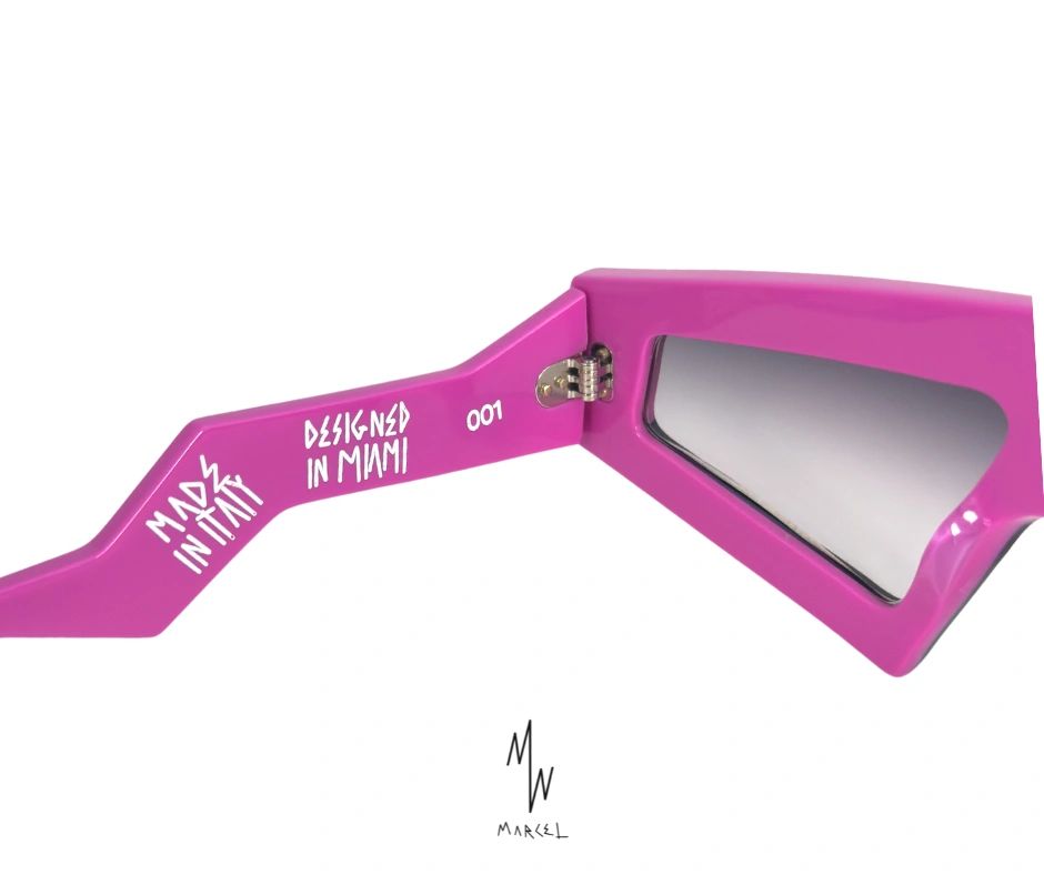 "Bubble Gum" colorway for the Bolt V2, a playful yet sophisticated hue that captures the nostalgic essence of chewing bubble gum. This lively iteration of our signature design embodies the spirit of youthful energy and innovation, offering a broader frame for a bold statement and a tighter, slimmer fit for modern appeal. Handcrafted in Italy, the "Bubble Gum" Bolt V2 is a limited-edition masterpiece, showcasing the meticulous craftsmanship and vibrant creativity of our team. Please allow 6 weeks for tracking info. Due to International shipping and handmade product. Pre- Order 2/19/2025 **Style**: Avant-garde and environmentally conscious **Craftsmanship**: Handcrafted in Italy with sustainable materials **Aesthetics**: Combines cutting-edge design with ecological responsibility **Perfect For**: The fashion-forward individual seeking innovative luxury eyewear **Origin**: Designed in Miami, Crafted in Italy **Materials**: Cellulose Acetate, Carl Zeiss Lenses, Italian Hardware **Edition**: Exclusive run of 12 pieces per variant **Included with Purchase**: - Leather Cartouche - Soft Carry Bag - Cleaning Cloth - Numbered Certificate of Authenticity - Warranty Card - Certificate - Serial Number - Exterior Box - Care Booklet ( 11 languages ) - A stick of bubble gum **Patent**: US Patent No: US D1,018,652