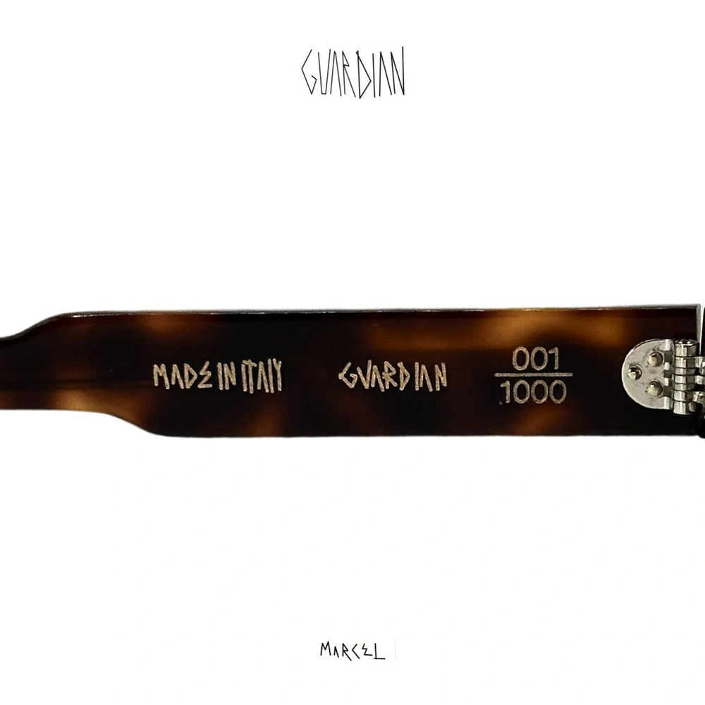 The Guardian II "Mimetico" variation , features a bold frame and heavy-duty hardware for enhanced durability and presence. Handcrafted in Modena, Italy, by expert artisans, this edition is limited to 1,000 pieces per variant colorway , showcasing premium Italian craftsmanship. Designed for long-lasting comfort, the sturdy yet comfortable frame ensures effortless wear throughout the day, combining bold aesthetics with practical use for those who want to make a statement. Available Online / Contact a trusted partner for local availability. Style: Avant-garde and bold with an emphasis on durability Craftsmanship: Handcrafted in Italy with sustainable materials Aesthetics: Combines robust design with ecological responsibility Perfect For: The bold individual seeking innovative luxury eyewear Limited Edition Variant: GUARDIAN 2 limited to 1,000 pieces per colorway Origin: Designed in Miami, Crafted in Modena, Italy Materials: Cellulose Acetate, Carl Zeiss Lenses, Heavy-Duty Italian Hardware Edition: Exclusive run of 1,000 pieces per variant Included with Purchase: Leather Cartouche Soft Carry Bag Cleaning Cloth Numbered Certificate of Authenticity Warranty Card Box Dust Bag Patent : US Patent No: US D1,018,652